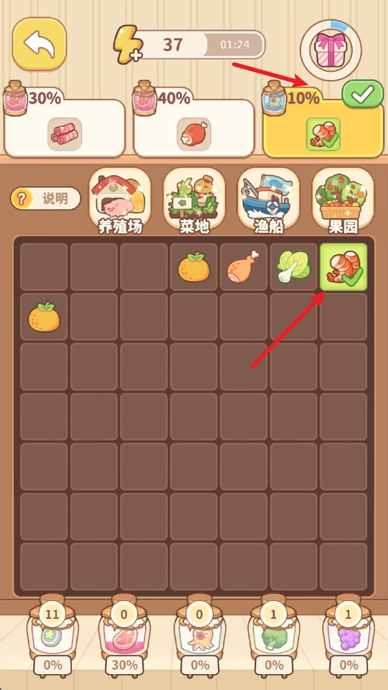 2、在這里點擊上方的養(yǎng)殖場、菜地、漁船和果園即可得到對應(yīng)產(chǎn)品。