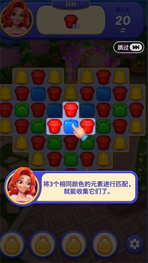 2、將3個(gè)相同顏色的元素進(jìn)行匹配,就能收集它們了,收集指定數(shù)量的元素就能過關(guān)