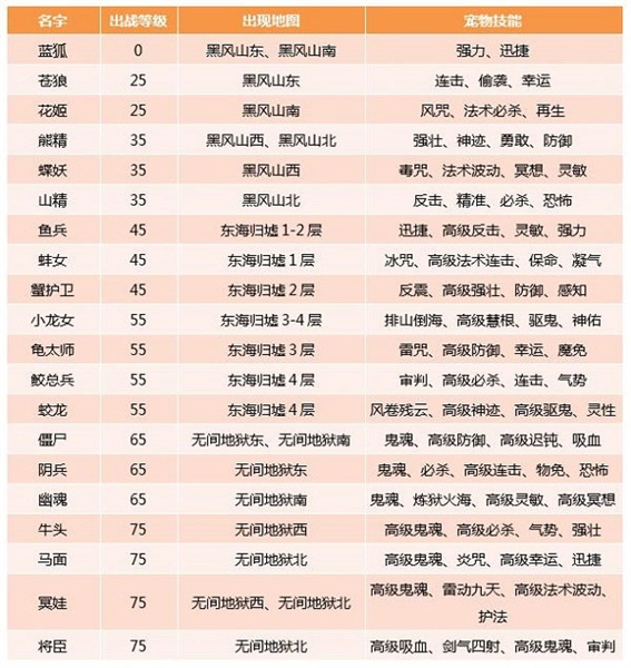 根據(jù)能力和獲得難度的不同,寵物可以分為以下幾類(lèi):