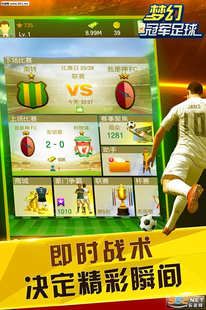 《夢幻冠軍足球》是一款專為足球愛好者精心打造的經(jīng)營模擬足球游戲!在這里,玩家將身兼足球俱樂部的教練與經(jīng)理人雙重角色,負責(zé)球員的招募與訓(xùn)練、球隊戰(zhàn)術(shù)和陣型的制定,還能帶領(lǐng)隊伍征戰(zhàn)聯(lián)賽、杯賽以及冠軍聯(lián)賽,全力向三冠王的榮耀發(fā)起沖擊。