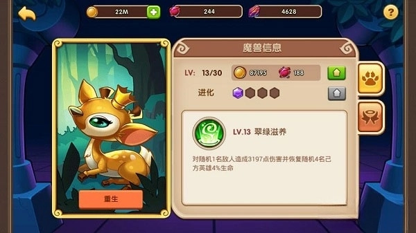 PS: 如果你發(fā)現(xiàn)自己培養(yǎng)錯了魔獸也沒關(guān)系哦,我們提供了重生功能,可以返還部分消耗材料,免除你的后顧之憂。