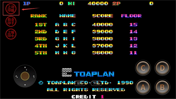 3、設置完成后返回游戲開始界面,先點擊投幣,待CREDIT顯示數(shù)字1時,再點擊開始即可進入游戲