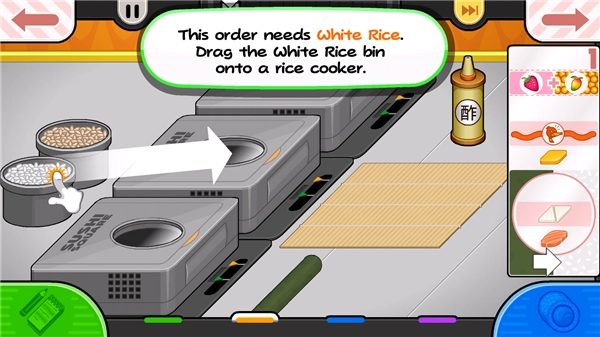1、所有的操作都會出現(xiàn)提示,只要簡單點(diǎn)擊屏幕,那么制作出來的壽司完成度越高。