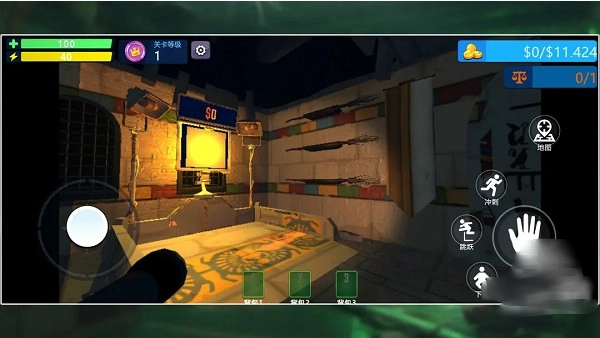 5.右側(cè)按鍵區(qū)包含“下蹲”“跳躍”等交互功能鍵,長按或點擊觸發(fā)對應動作。