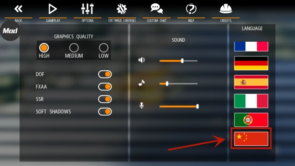 注:進入游戲后,可點擊中間頂上偏右的齒輪,進入options-Language,點擊國旗可以將語言設(shè)置為中文。