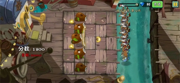 2、加農(nóng)炮之戰(zhàn):只要等海鷗聚到一起再打就能獲得很高的分?jǐn)?shù)了,有高階的椰子加農(nóng)炮會(huì)更輕松。