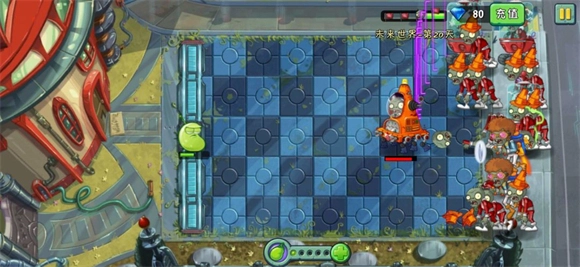 5、單槍匹馬:這關(guān)的進(jìn)化路線(xiàn)是 玉米投手-激光豆-閃電蘆葦-星星果-火龍草。玉米階段沒(méi)什么好說(shuō)的,激光豆時(shí)會(huì)有一個(gè)精英路障,用能量豆打死就行了。另外,最好在這個(gè)階段就把電磁盾打死,否則,到了閃電蘆葦會(huì)很麻煩。閃電蘆葦也沒(méi)什么好說(shuō)的。星星果時(shí)就是要茍著,到了火龍草,巨人射激光,你就用能量豆就行了。