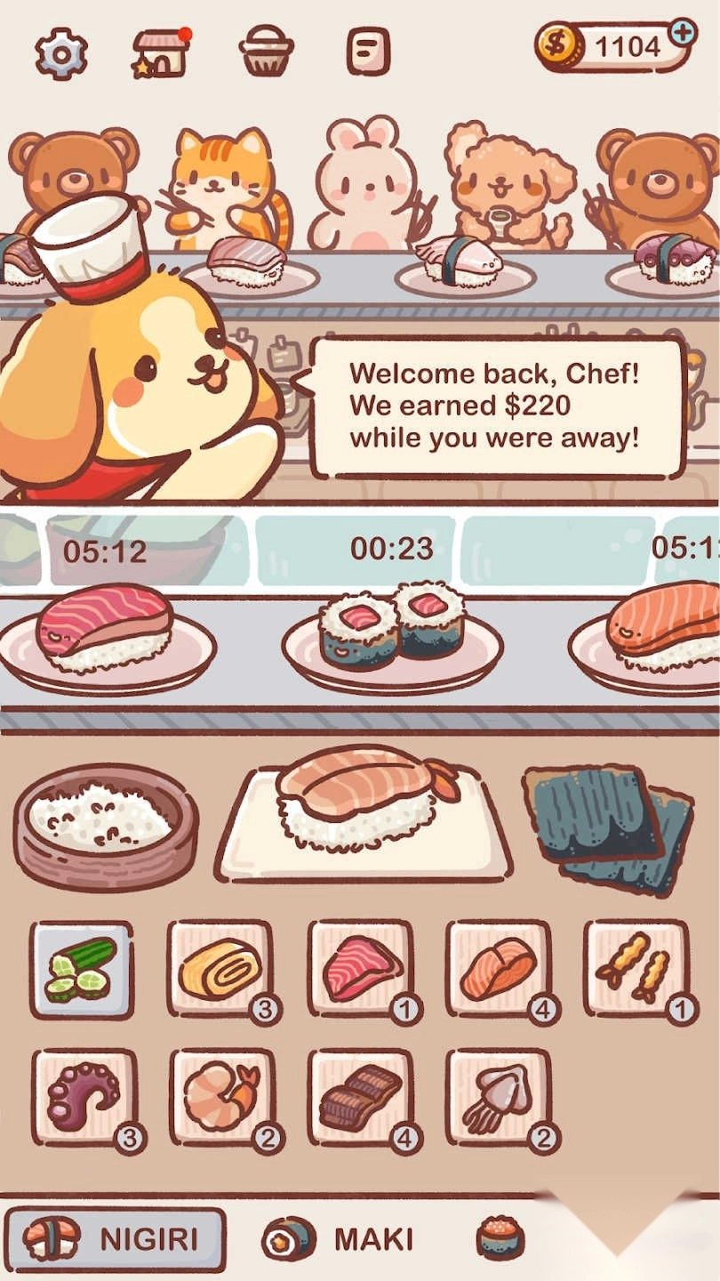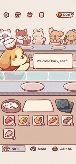 《狗狗回轉壽司》是一款豎版卡通風格的模擬經營游戲,擁有精美細膩的畫面,玩家在游戲里會邂逅形形色色的可愛角色。游戲中,玩家能體驗到豐富的壽司制作環(huán)節(jié),對壽司愛好者而言無疑是一大驚喜。通過滿足顧客需求獲取利潤后,還能升級自己的店鋪,快來一起制作壽司吧!