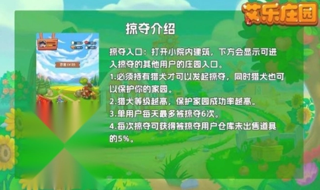 獵犬可以去其他用戶小院進(jìn)行掠奪,掠奪成功可獲得該用戶5%未出售道具