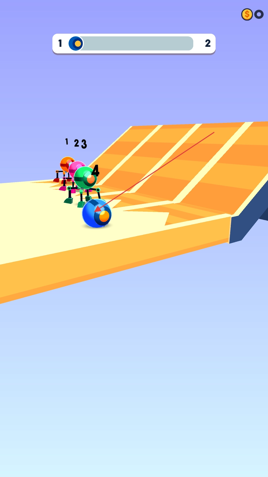2、在賽道上,滑動(dòng)屏幕操控藍(lán)色角色沿路線滾動(dòng),搶占進(jìn)度優(yōu)勢(shì)。
