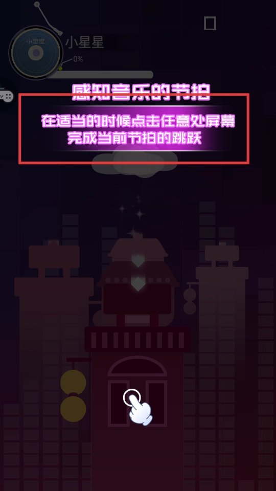 2、遵循指引,感知音樂節(jié)拍,在合適時(shí)機(jī)點(diǎn)擊屏幕,完成當(dāng)前節(jié)拍的跳躍操作。