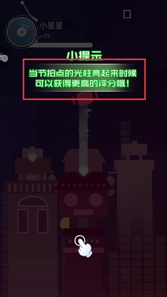 3、留意節(jié)拍點(diǎn)的光柱,待其亮起時(shí)點(diǎn)擊,可獲得更高評分,助力提升游戲成績。
