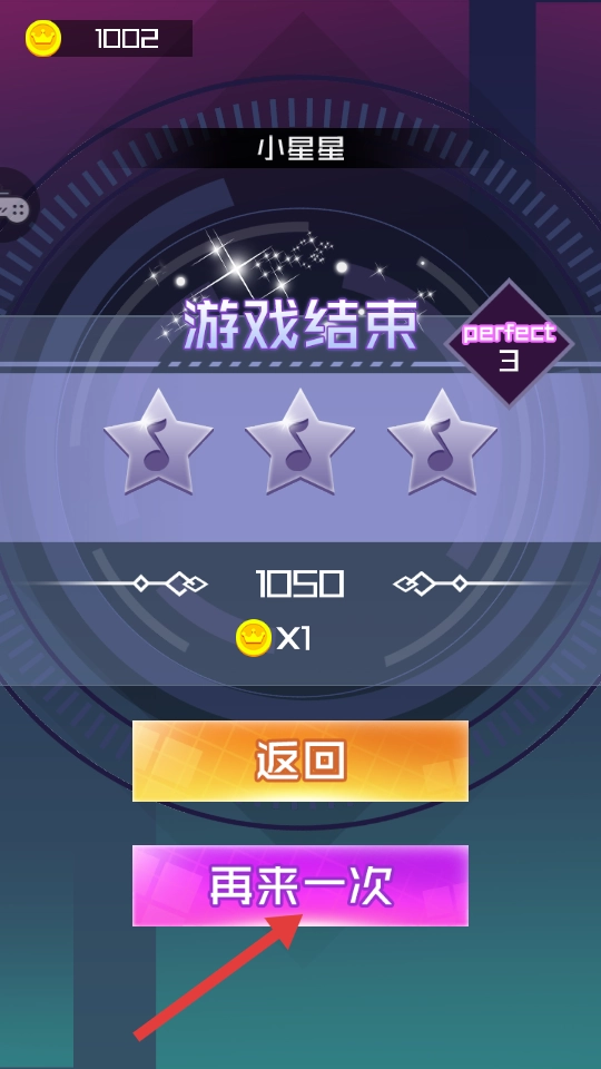 4、游戲結(jié)束后,若想重試,點(diǎn)擊紫色【再來一次】,重新挑戰(zhàn)游戲關(guān)卡。