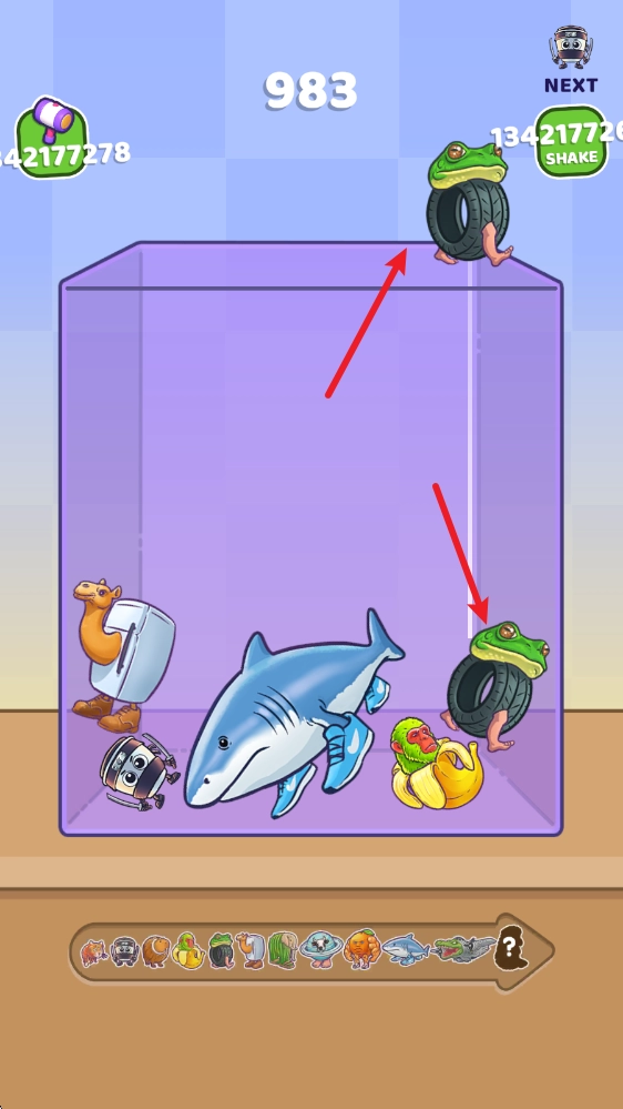 3、右上角NEXT可以看到下一個(gè)娃娃,方便你進(jìn)行合成。