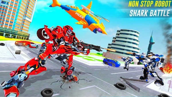 將警察自行車變成憤怒的鯊魚機(jī)器人,以取消機(jī)器人戰(zhàn)爭(zhēng),并在戰(zhàn)士鯊魚游戲中保護(hù)超級(jí)城市免受外星人入侵。