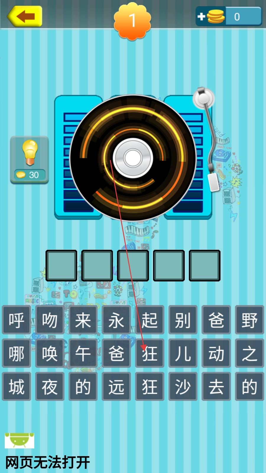 3、聽歌詞,從鍵盤選字,拼出正確歌名。