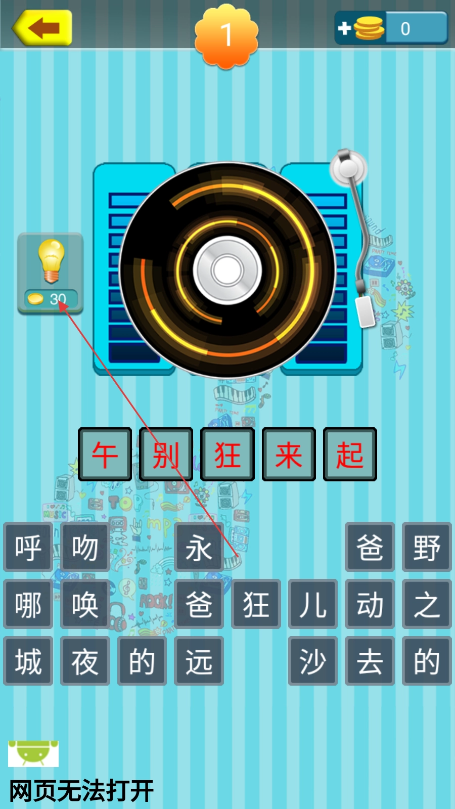 4、若猜測錯誤,點(diǎn)擊左側(cè)燈泡圖標(biāo),可以消耗金幣獲取提示。