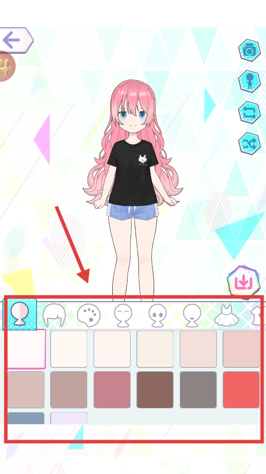 3、調(diào)整發(fā)型、膚色,搭配服飾(上衣、下裝、配飾),打造專屬風(fēng)格。