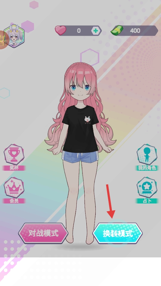 2、選擇“換裝模式”,開啟角色形象自定義編輯。