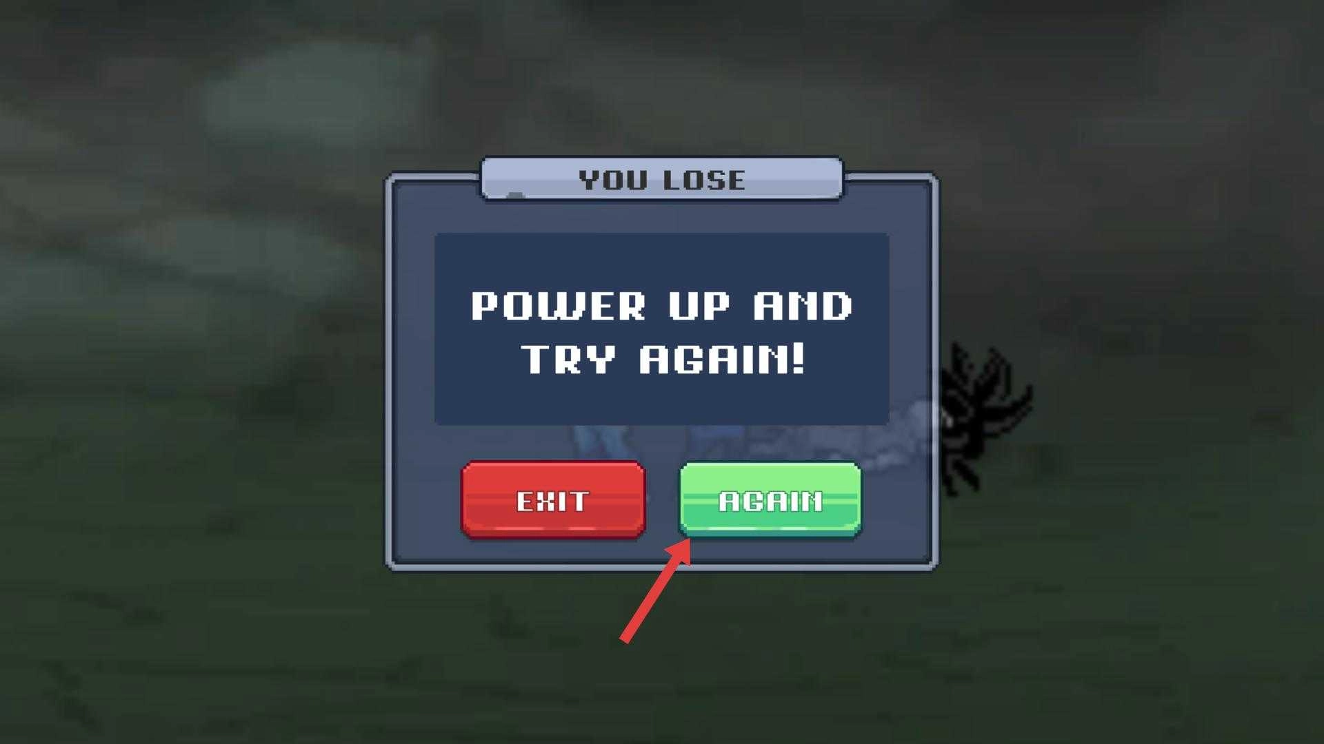 4、若戰(zhàn)斗失敗,出現(xiàn)YOU LOSE界面,點(diǎn)擊AGAIN按鈕,即可重新開始戰(zhàn)斗,繼續(xù)挑戰(zhàn)敵人。