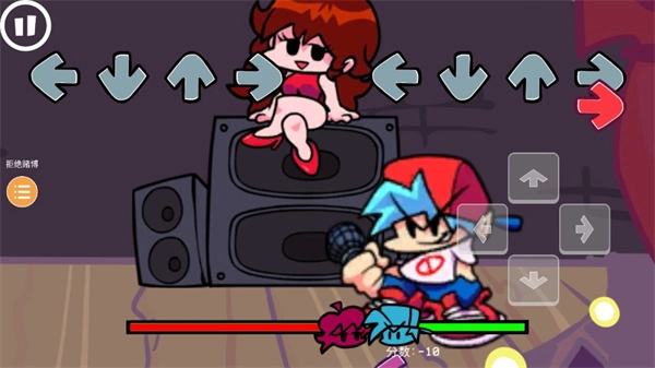 4、進(jìn)入游戲,游戲里的關(guān)卡用Week+數(shù)字來(lái)區(qū)分,講述主角在周五夜晚遭遇的事故。想要和紅衣小妹妹在一起竟是如此艱難,總有人想要拆散這對(duì)CP。你需要的做就是拿起手中的麥克風(fēng),迎戰(zhàn)撲面而來(lái)的敵人;