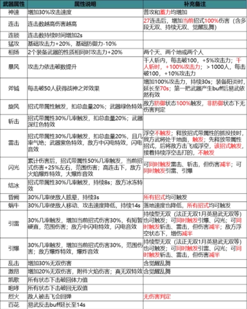 (4)數(shù)據(jù)均為該屬性10級時(激昂、斧鉞不可升級)