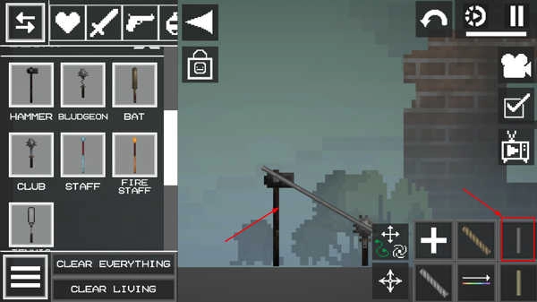 2、進(jìn)入游戲如圖,點(diǎn)擊左上角菜單按鈕,添加兩個(gè)物品在地上;