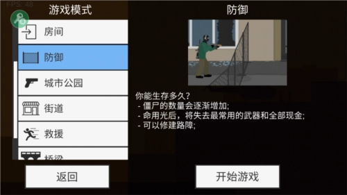 1、進入平面僵尸防御2025最新版游戲后點擊開始游戲,會有好幾種關卡任你選擇,小編推薦防御模式,這款模式比較簡單
