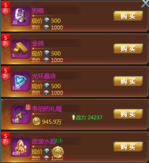 其次就是逛商城,商城里的每日限購就三個字,買買買!因為在每日限購里大部分的稀有材料都是3折出售,此時不買更待何時!那么問題就來了,我們優(yōu)先購買哪些材料呢?