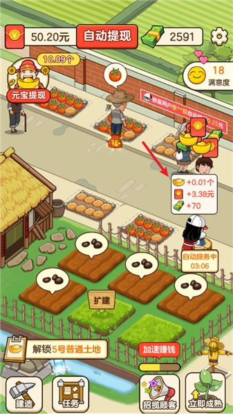 6、通過種植各種作物來賺取資金,不斷的去發(fā)展你的菜市場和土地,解鎖更多的菜品,獲取豐富獎(jiǎng)勵(lì)。