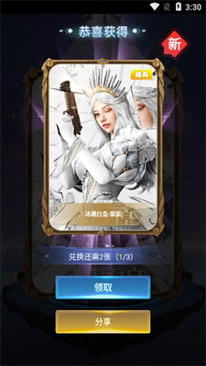3、如圖所示,獲得相關(guān)皮膚碎片,集齊3張后即可進(jìn)行兌換。