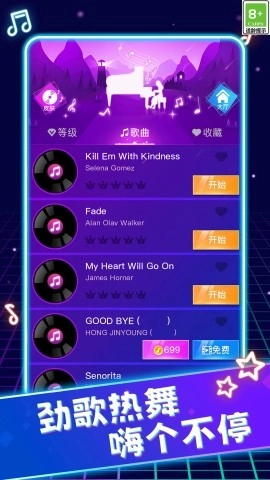 1、進(jìn)入游戲大廳后,在“等級(jí)”“歌曲”分類中挑選心儀曲目,點(diǎn)擊“開(kāi)始”即可進(jìn)入游戲,跟隨音樂(lè)節(jié)奏準(zhǔn)備操作。
