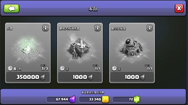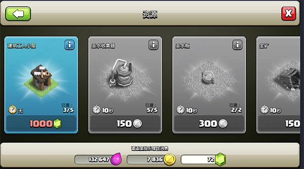 玩家可在村莊地圖內(nèi),建設(shè)圣水收集器、建筑工人小屋等資源建筑,來(lái)生產(chǎn)一些金幣、圣水、暗黑重油等資源。玩家可利用這些資源,來(lái)提升建筑等級(jí)、訓(xùn)練兵種、提升兵種等級(jí)、制作藥水等。