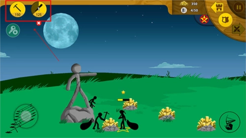 1、玩家進(jìn)入游戲后首先需要做的就是通過點(diǎn)擊游戲右上方的“鋤頭”按鈕,然后召喚我們的火柴人小弟。在獲得更多資源后可以召喚更多手下,快速升級。