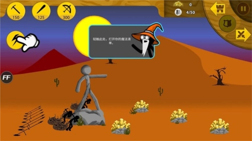 火柴人戰(zhàn)爭只有兩種兵種,礦工和棍棒手,礦工可以通過開采礦石的方式來為我們帶來經(jīng)濟(jì),不過要注意的是,礦工是非常脆弱且會被敵方攻擊的,所以一定要造一些士兵來保衛(wèi)他們。