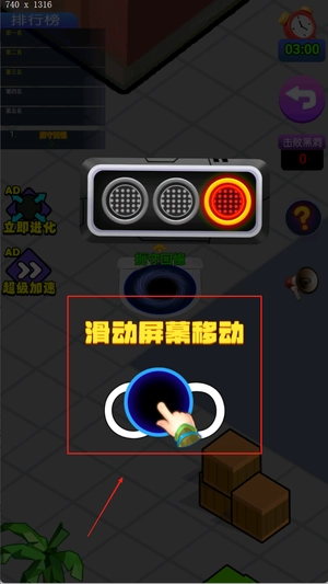 2、左側(cè)控制黑洞移動方向,右側(cè)為加速與技能按鈕,界面簡潔便于快速應(yīng)對各種突發(fā)狀況。