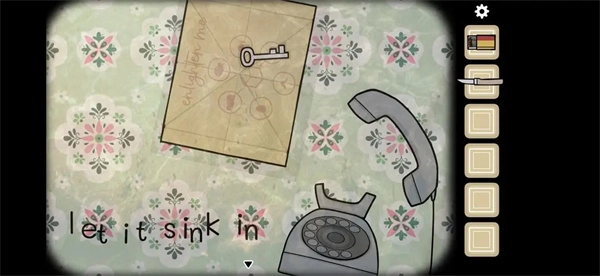 輪回的房間正版是一款非??简?yàn)玩家解謎能力的手繪風(fēng)格冒險(xiǎn)游戲。玩家初始會(huì)置身于一個(gè)充滿神秘感的房間內(nèi),房間里擺放著電話、鏡子等各類物品。若想成功逃離此處,就需要充分運(yùn)用自己的智慧,解開隱藏在房間里的謎題,獲取關(guān)鍵道具,如此方能順利通關(guān),并解鎖下一個(gè)新房間。
