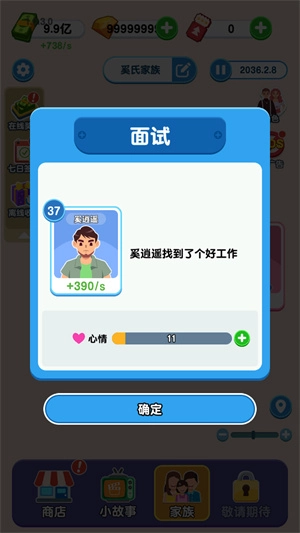 游戲里隨機(jī)事件的設(shè)計(jì)挺用心的,每年都會(huì)碰到不同的情況,還會(huì)依據(jù)不同年齡設(shè)置對(duì)應(yīng)的事件。所以就算是類似掛機(jī)的玩法,也能讓玩家有一定的策略思考過(guò)程。這些事件設(shè)定能豐富游戲體驗(yàn),而且過(guò)程也比較輕松,畢竟在重大事件的決策中是可以影響數(shù)值的。