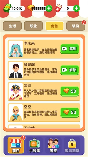 1、點(diǎn)擊主界面上的人物,系統(tǒng)會(huì)彈出對(duì)應(yīng)的信息列表。