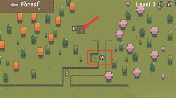 3. 到【Level3】,移動(dòng)至箭頭指向的棕色區(qū)域觸發(fā)機(jī)關(guān)將方框內(nèi)石頭進(jìn)行移動(dòng),保持道路通暢。