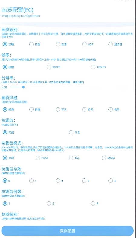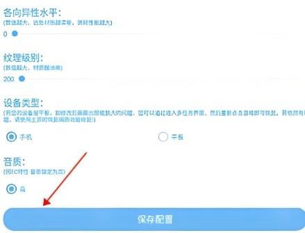 2、根據(jù)自己的喜好以及手機(jī)性能,選擇要修改的畫質(zhì)以及其他屬性