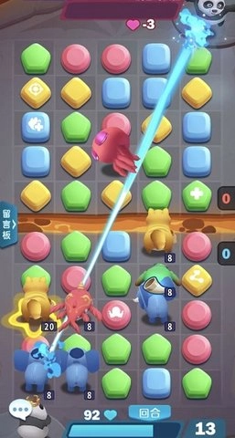 2、精彩紛呈的道具系統(tǒng):游戲中有各種各樣的道具可以使用,如炸彈、冰凍、變身等,這些道具可以幫助玩家更快地消除怪獸,擊敗對手。