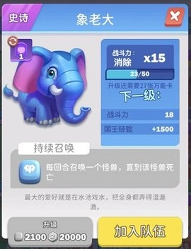 【象老大】最大的特點是鼻子上,它能利用自己鼻子的優(yōu)勢召喚同伴,雖然一局只能召喚一個,但是只要老大在,每回合都能帶一個上場~~不愧是9階才能得到的史詩級選手!!
