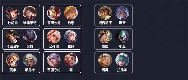 10、孫尚香-維奧萊特 魯班七號(hào)-約恩 成吉思汗-琳蒂