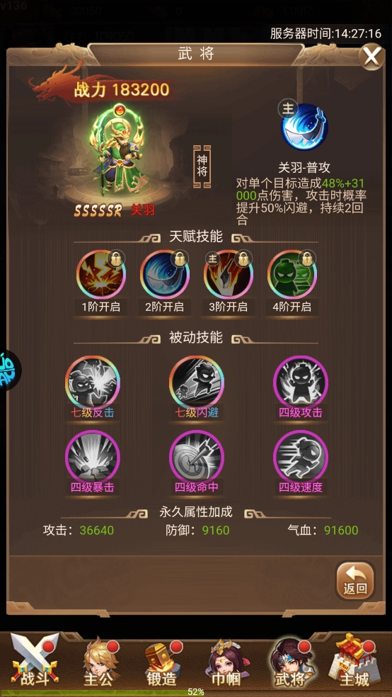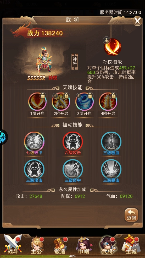 3、多元化的培養(yǎng)路徑:游戲為武將提供了多種培養(yǎng)路徑,包括升級、進(jìn)階、裝備強(qiáng)化等,玩家可以根據(jù)自己的喜好和戰(zhàn)略需求,為武將打造專屬的成長路線。