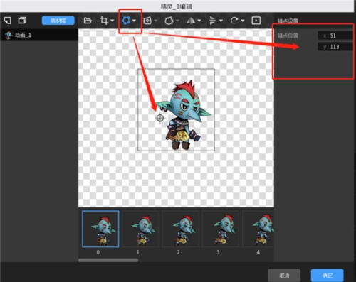 錨點可以統(tǒng)一設(shè)置在角色的腳下,確保每幀圖的右邊坐標數(shù)值一致。