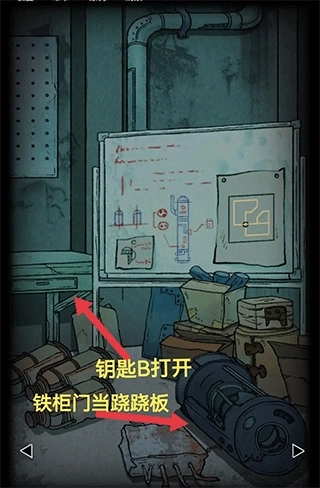 使用錘子敲擊右側(cè)柜子,可獲得鑰匙B以及一塊鐵質(zhì)柜門板