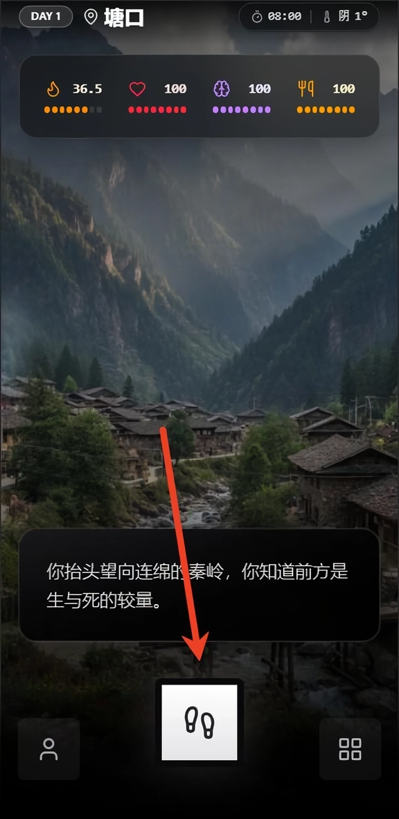 3、最后,玩家便可以進(jìn)入到游戲中去,點(diǎn)擊腳步,做出相應(yīng)的游戲選擇。