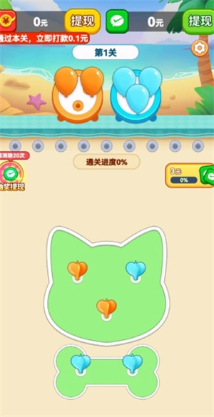 3、消除了所有氣球就能過(guò)關(guān)提現(xiàn)紅包。