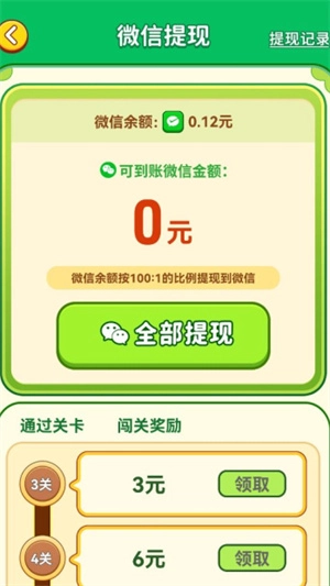 5、過(guò)關(guān)還能獲得紅包,按照百分比,最低0.1即可提現(xiàn)。